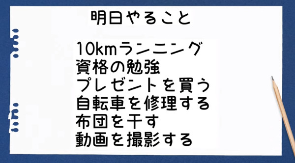 やることが明確になるだけで、「何となくダラダラして終わった」という一日を減らすことができます。