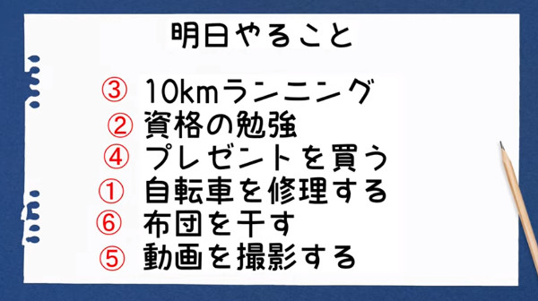 まず、一日の終わりに、翌日やるべきことを6つだけ書き出します。