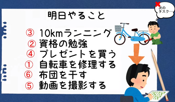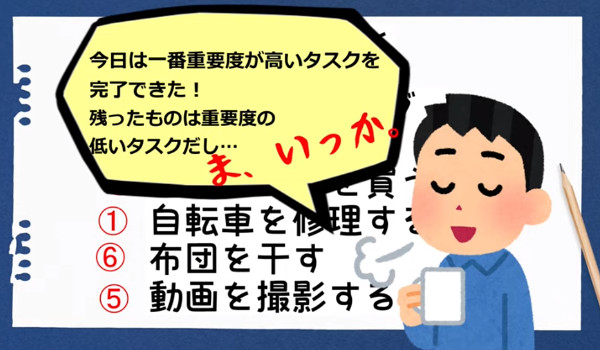 6つすべて終わらなくても問題ありません。大切なのは、「最も重要な1つにちゃんと手をつけたかどうか」です。それだけでも、その日は成功だと言えます。