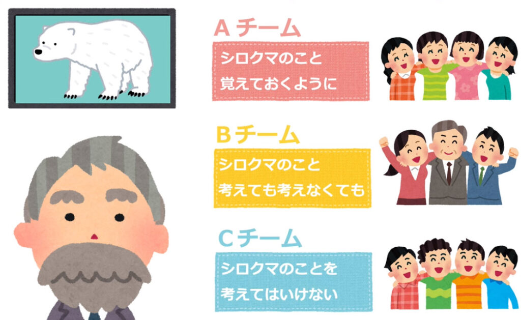 その後、一定時間が経ったあとで、「シロクマのことをどれくらい思い出したか・記憶しているか」を測定しました。