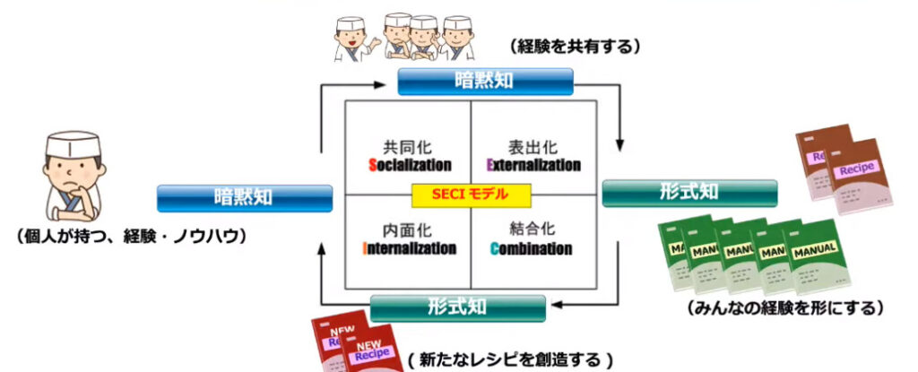 SECIモデルは、そんな属人になりがちな知識がどのように個人から組織全体に広がっていくかを理解するための優れた枠組みです。